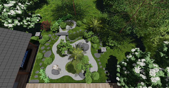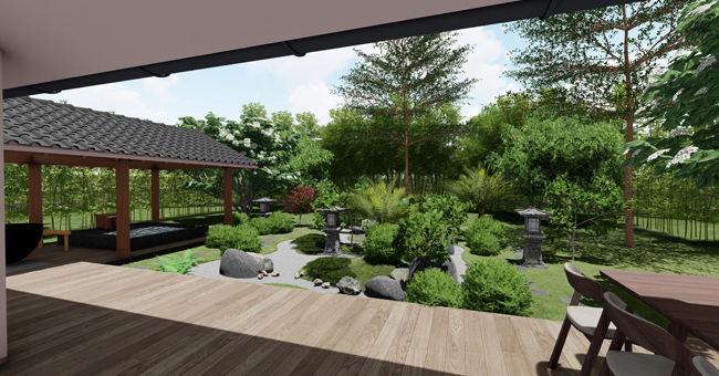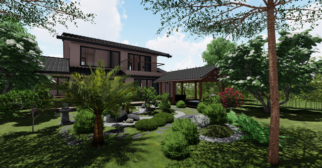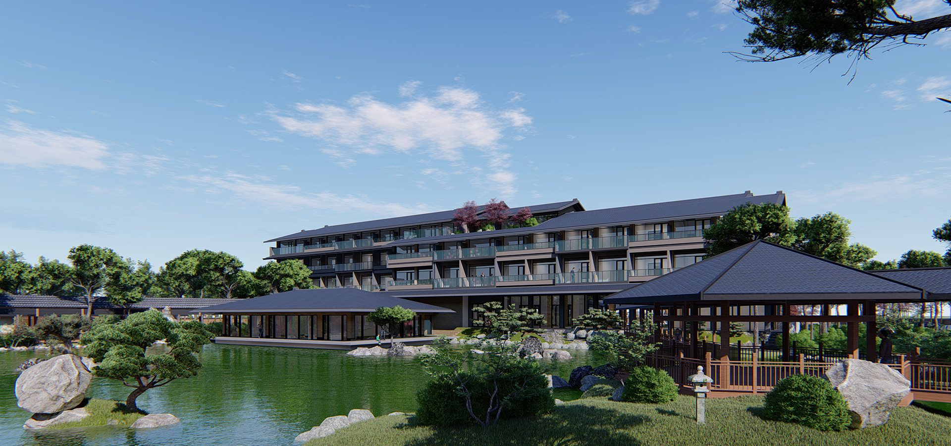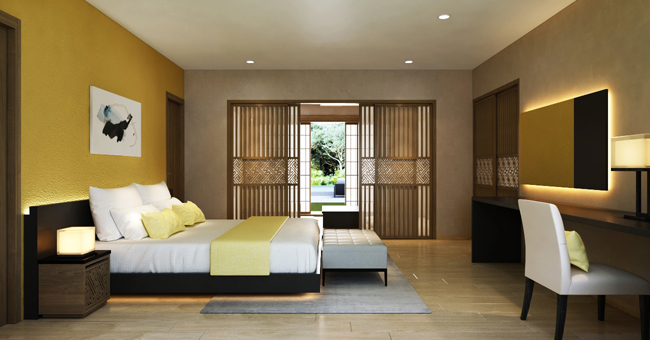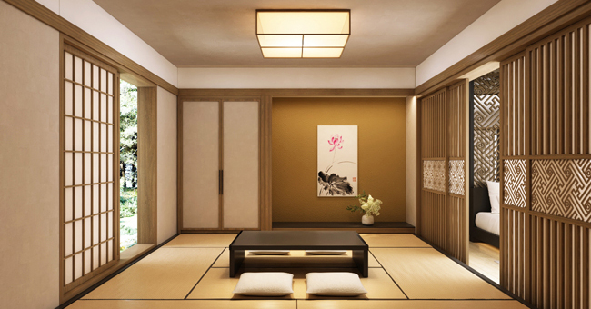 Các biệt thự được xây dựng ở không gian riêng tư thiết kế theo lối kiến trúc sân vườn thiền định, một nét đặc trưng có từ hàng trăm năm nay trong nền văn hóa Nhật.