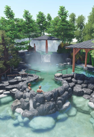 Đặc biệt, khu dịch vụ suối khoáng nóng onsen được vận hành theo mô hình onsen Nhật Bản, sử dụng từ nguồn suối khoáng nóng Mỹ An với nhiều khoáng chất, đặc trưng là hàm lượng lưu huỳnh, tác dụng trong phục hồi chức năng, tăng cường sức khỏe, chống lão hóa, chữa bệnh và làm đẹp da.